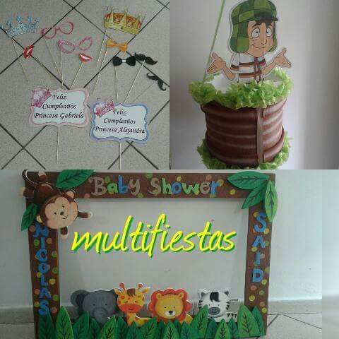 Piñatas ,letreros, bomboneras,apliques en icopor, centro de mesas,cajas de regalos, lluvias de sobres,cuadros de selfies, etc